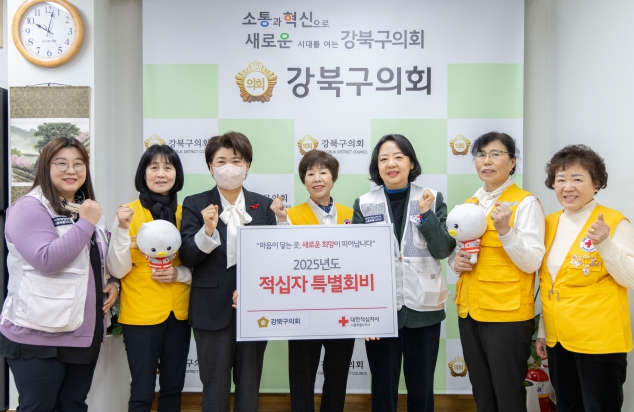 강북구의회는 매년 사회적 책임을 다하기 위해 대한적십자사에 특별회비를 전달하고 있으며, 이날 전달된 특별회비는 국내외 재난구호와 위기가정, 취약계층 지원 등 적십자 인도주의 사업 활동에 활용될 예정이다.