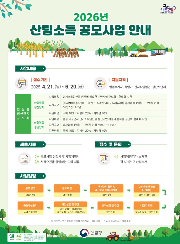 | ▲ 2026년 산림소득 공모사업 안내 |