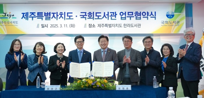 제주도는 11일 오후 2시 한라도서관에서 국회도서관과 국회 의정정보 제공 및 상호 협력을 위한 업무협약을 체결했다.