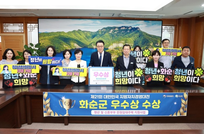 화순군은 행정안전부와 한국일보가 공동 주최한 '제21회 대한민국 지방자치경영대전'에서 ‘청년 및 신혼부부 만원임대주택 지원사업’이 행정안전부장관인 우수상을 수상했다고 26일 밝혔다.