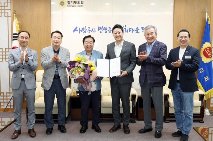 김진경 경기도의회 의장(더민주·시흥3)은 30일 의장 접견실에서 제11대 후반기 경기도의회 의정정책추진단 위원 위촉식을 열고 김성남 의원(국민의힘, 포천2)을 신임단장으로 위촉했다.
