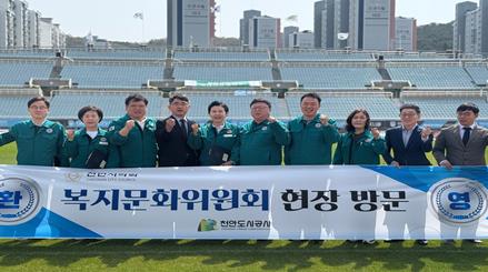 천안시의회 복지문화위원회는 4월 17일 천안종합운동장과 대한민국 축구종합센터 건립 현장을 방문해 주요 체육·문화 기반시설의 조성 및 운영 현황을 점검하고, 관련 부서와의 소통을 통해 개선 방안을 모색했다.