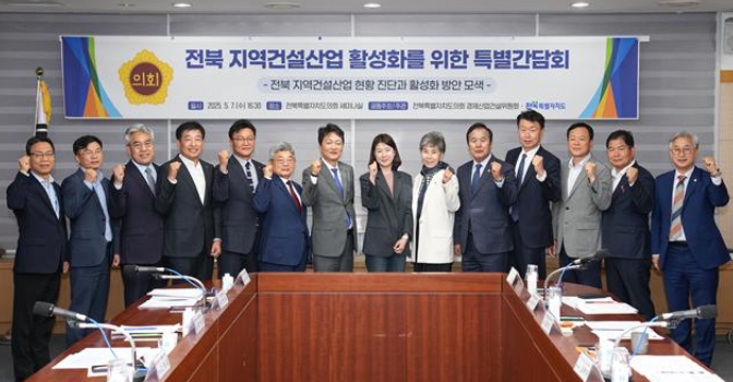 경제산업건설위원회는 지난 7일 5개 건설관련 협회(대한건설협회 전북특별자치도회, 대한전문건설협회 전북특별자치도회, 대한기계설비건설협회 전북특별자치도회, 한국엔지니어링협회 전북특별자치도회, 대한건축사협회 전북특별자치도회)와 만나 ‘전북 지역건설산업 활성화를 위한 특별간담회’를 개최했다고 밝혔다.