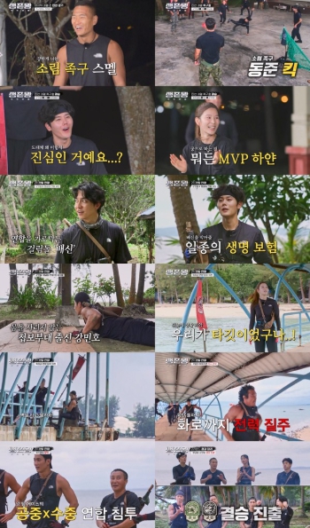 TV CHOSUN의 '생존왕 : 부족전쟁'에서 김병만의 ‘공중 작전’과 강민호의 ‘수중 작전’ 연합에 ‘피지컬팀’이 완패했다. 결국 김병만의 ‘정글팀’과 이승기의 ‘군인팀’이 결승에 진출했다.