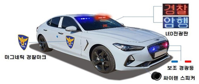 신형 암행순찰차는 제네시스 G70, 3.3 기종으로 기존 차량에 비해 주행성능이 크게 향상돼 난폭운전 등 고위험행위 후 고속으로 도주하는 차량에 대해 검거가 가능하다.