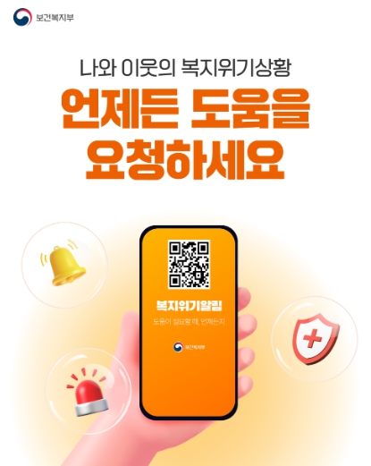 보건복지부는 경제적 어려움, 건강 문제, 고립·고독 등 본인과 이웃이 겪고 있는 복지위기 상황을 모바일로 신속하게 알릴 수 있는 ‘복지위기 알림 앱’을 운영하고 있다. 본인은 물론 이웃 등 누구든지 주변의 복지위기를 앱으로 알리면 관할 읍면동 주민센터에 즉시 배정된다. 이후 복지 담당 공무원의 확인과 상담을 거쳐 필요한 복지서비스를 제공하게 된다.