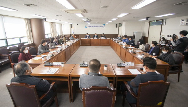 ▲ ‘생활폐기물 배출에 관한 연구모임’이 지난 3월 18일 의회 대회의실에서 안산시 폐기물 수집운반 업체 관계자들과 간담회를 갖고 있다. |