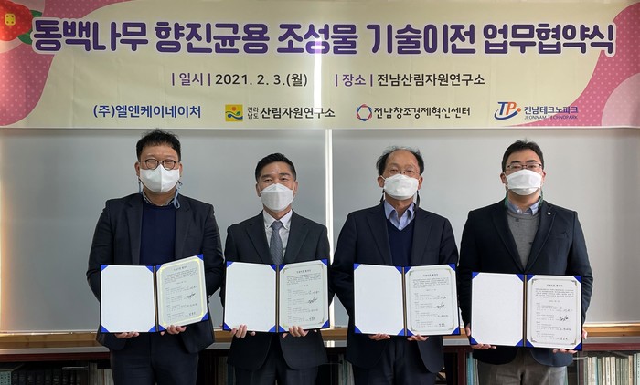 [전남=프레스뉴스] 강래성 기자=전라남도산림자원연구소는 지난 3일 여수 소재 ㈜엘엔케이네이처(대표 김광진)에 ‘동백나무 항진균용 조성물’ 기술을 이전했다고 밝혔다.