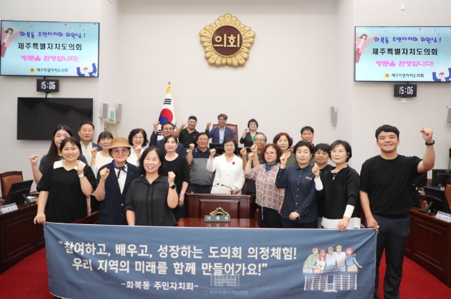 제주특별자치도의회는 8월 27일 오후 3시, 본회의장에서 화북동 주민자치회(회장 고혁수) 위원 20명이 참석한 가운데 모의의회 의정체험을 개최했다.
