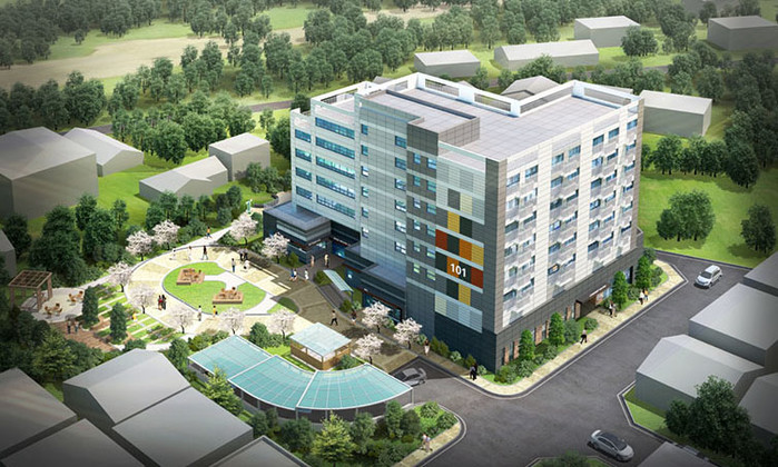 65세 이상 저소득 고령층의 주거복지를 위해 조치원읍 신흥리에 조성된 영구임대 신흥사랑주택은 지하 1층, 지상 7층 규모로 26㎡ 50세대, 33㎡ 30세대 등 총80세대의 주거공간과 사회복지시설이 복합된 공공실버주택이다.