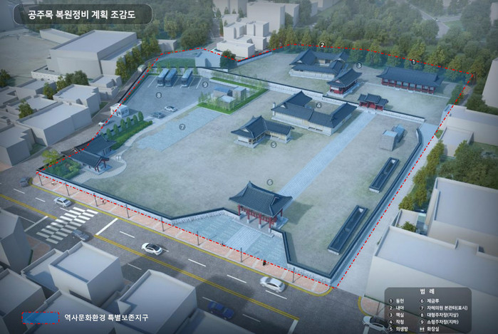김정섭 시장은 “공주목 복원 정비를 통해 명실상부하게 충청도 수부도시로서의 역사적 정체성과 위상을 확립하겠다”며 “이를 통해 시민의 자긍심을 고취하고 나아가 원도심을 또 하나의 역사문화관광 핵심거점으로 발전시키도록 노력하겠다”고 말했다.