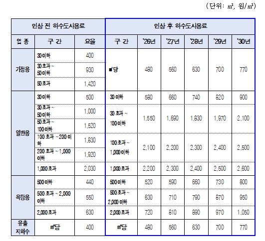 | ▲ 인상 전후 하수도사용료 요율표 |