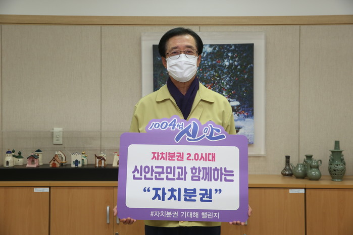 [전남=프레스뉴스] 강래성 기자= 신안군(군수 박우량)은 12일 자치분권 2.0시대 준비를 위한 ‘자치분권 기대해 챌린지’에 동참했다.