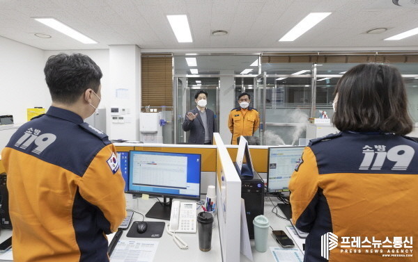 ▲ 29일 오전 오병권 경기도지사 권한대행이 호매실119안전센터를 현장 방문하여 설 연휴 근무자들을 격려 하고 있다.(사진=경기도) |