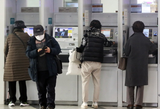 ▲서울 시내 한 건물에 설치된 은행의 현금인출기(ATM)에서 시민들이 입출금 하는 모습. (사진= 뉴스1) |