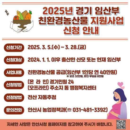 | ▲안산시, 임산부 친환경농산물 지원사업 홍보 포스터(사진=안산시) |