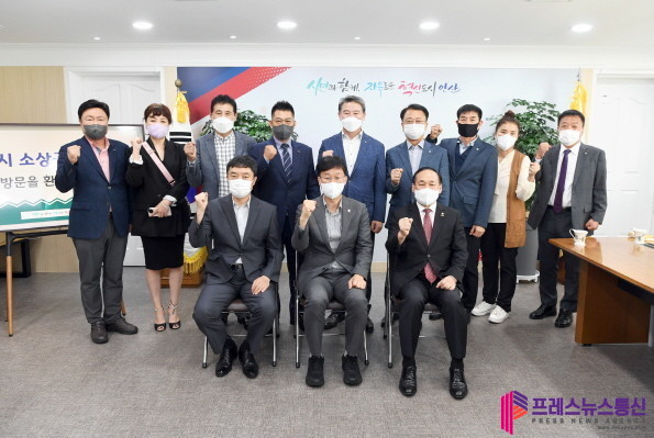 | ▲ 이민근 안산시장이 지난 7일 시청에서 열린 안산시소상공인연합회와 상권활성화를 위한 대책 논의 후 참석자들과 기념촬영을 하고 있다.(사진=안산시) |