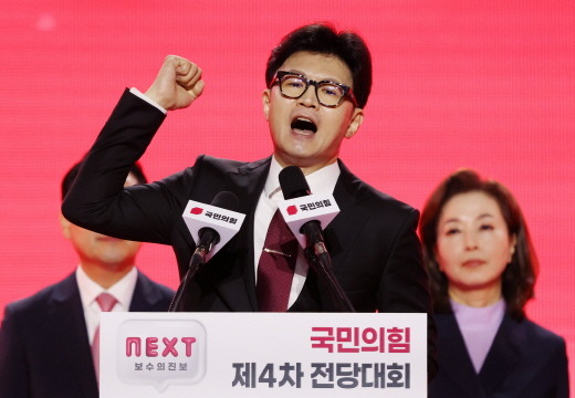 한 후보는 23일 경기 고양 킨텍스에서 열린 국민의힘 제4차 전당대회 대표 경선에서 당원 투표와 일반 국민 여론조사를 합산한 결과 과반인 62.8%를 득표, 결선투표 없이 승리를 확정했다.