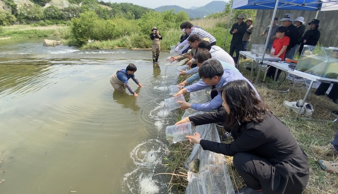 | ▲ 멸종위기 담수어류 방류행사 모습(사진=합천군) |