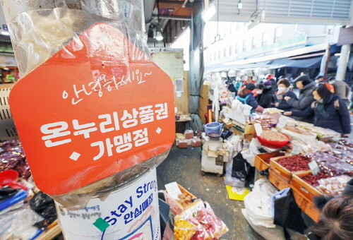| ▲시장의 한 상점에 온누리상품권 가맹점임을 알리는 팻말이 붙어 있다. (사진= 뉴스1) |
