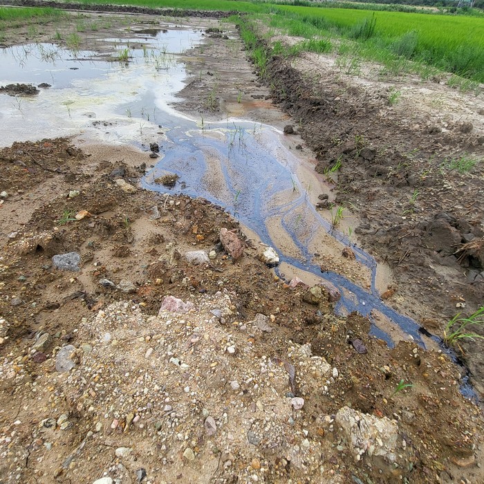 특히, 오염된 토사에서 흘러내리는 침출수가 기름띠를 이루고 있어 주변 농지 오염은 물론 인근 주민들의 건강에도 막대한 영향을 줄 수 있어 심각한 상황에 이르렀다.