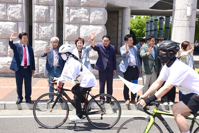 발대식에 참석한 조규일 진주시장은 아무 사고 없이 안전하고 건강하게 완주해 줄 것을 당부하고, “이번 국토 대종주를 통해 명품 자전거도시 진주와 세계축제도시 진주의 유등축제를 널리 알려 달라”며 “우리 시의 자전거 이용 활성화를 위해 자전거 타기 환경 조성에도 여러분이 앞장서 주길 바란다”고 말했다.