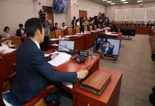 | ▲정청래 국회 법사위원장이 21일 오전 서울 여의도 국회에서 열린 법제사법위원회 전체회의 순직 해병 수사 방해 및 사건 은폐 등의 진상규명을 위한 특별검사의 임명 등에 관한 법률안 관련 입법청문회에서 의사봉을 두드리고 있다.(사진= 뉴스1) |