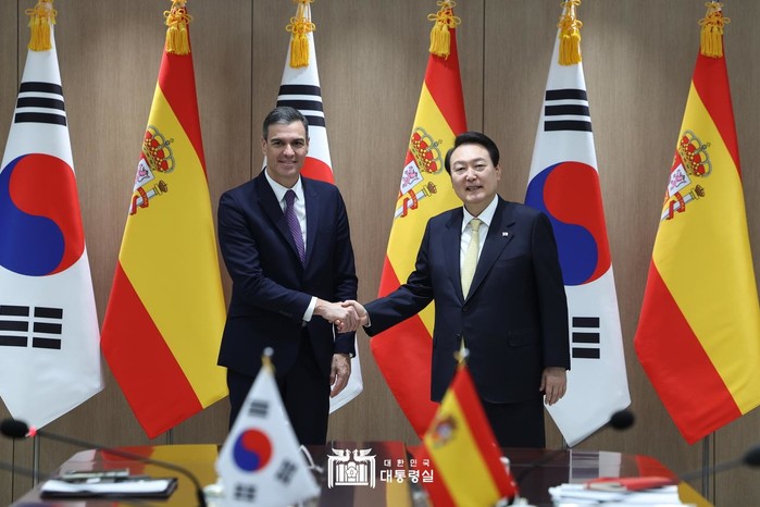 이날 윤 대통령은 페드로 산체스 스페인 총리의 공식 방한에 따른 ‘한-스페인 정상 공동언론발표’에서 “한국과 스페인은 지리적으로 멀리 떨어져 있지만, 협력의 거리는 그 어느 때보다도 가깝다”며 이같이 말했다.
