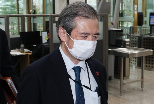 | ▲미바에 다이스케 주한일본대사관 총괄공사가 25일 서울 종로구 정부서울청사 외교부로 초치되고 있다.(사진= 뉴스1) |