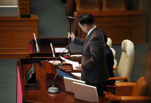 | ▲우원식 국회의장이 14일 오후 서울 여의도 국회에서 열린 제419회국회(임시회) 제4차 본회의에서 윤석열 대통령 탄핵소추안 가결을 알리고 있다.(사진= 뉴스1) |