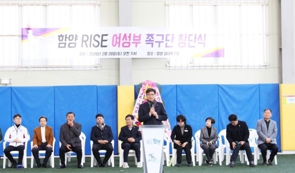 이날 행사에는 진병영 함양군수, 배우진 함양군의회 부의장, 김재웅 경상남도의회 도의원, 안병명 체육회장을 비롯한 관계자와 선수단 40여 명이 참석해 창단을 축하했다.