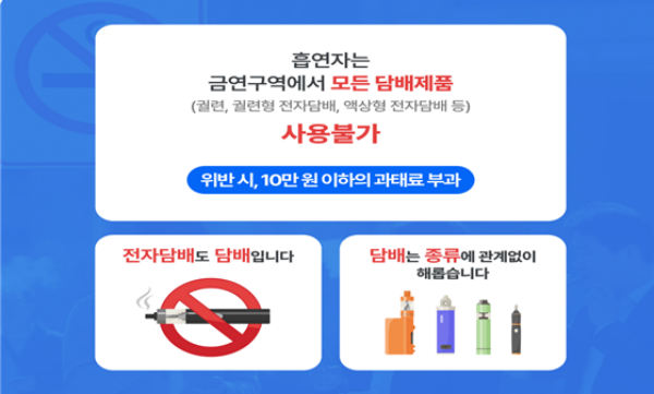 공원, 학교, 의료기관, 공중이용시설 등 금연구역을 대상으로 집중 지도·점검과 단속을 실시하며, 특히 흡연 민원이 잦은 지역을 중심으로 전자담배 사용자에 대한 단속을 강화할 방침이다.