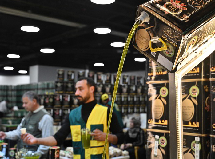 [프레스뉴스] 채정병 특파원=27일(현지시간) 매년 올리브 수확시기에 맞춰 열리는 요르단 올리브 축제가 암만의 한 전시장에서 열린 가운데 한 판매부스에 홍보용 올리브유가 쏟아지고 있다. 세계적으로도 품질을 인정받는 요르단 올리브유가 올해는 이상기온과 가뭄 등으로 평균 생산량 28,000톤에서 약18,000톤으로 급감하면서 가격도 작년에 비해 40% 오른 16리터 한통에 140디나르(한화 약 29만원) 선에서 거래되고 있다. 요르단 정부는 부족분을 채우기 위해 스페인, 그리스 등으로부터 약 4천톤의 올리브유를 수입할 예정이라고 밝혔다.