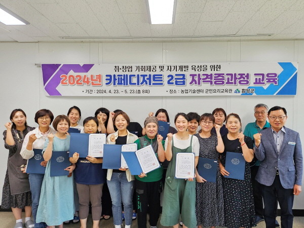 | ▲ 카페디저트 2급 자격증과정 교육 수료식(사진=함양군) |