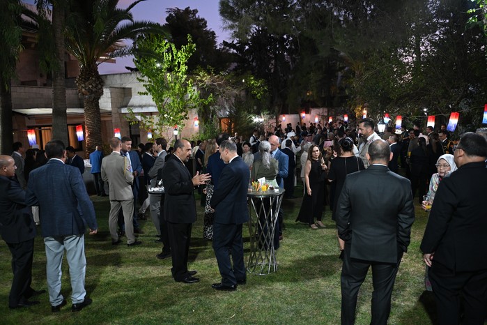 [프레스뉴스] 채정병 특파원=30일(현지시간) 주 요르단 대한민국 대사관 주최 개천절 국경일 행사가 대사관 관저 정원에서 열린 가운데 초청인사들이 담소를 나누고 있다.