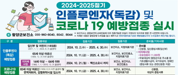 코로나19 예방접종 관련 사항은 함양군보건소 예방접종실(960-8040, 960-8044)로 문의하면 된다.