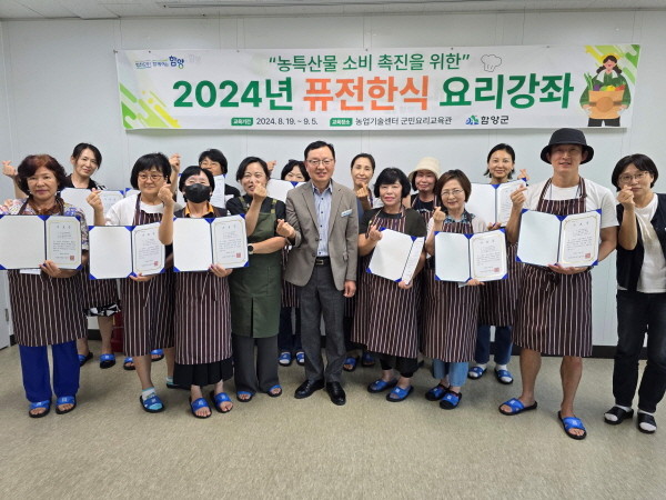 | ▲ 퓨전한식 요리강좌 교육 수료식(사진=함양군) |