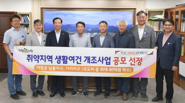 선정은 △가북면 동촌마을 △고제면 산양마을 △신원면 소야마을 △남하면 가천마을 △남상면 임불마을 △마리면 병항마을 △남하면 아주마을이 취약지역 생활여건 개조사업 공모에 선정됐다.