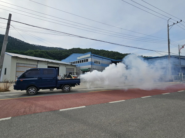 이번 방역소독은 관내 마을별 주택 밀집 지역을 비롯한 풀숲, 하천 주위 등 방역 취약지역을 대상으로 주 3회 실시되며 차량을 이용한 연무소독 활동으로 진행된다.