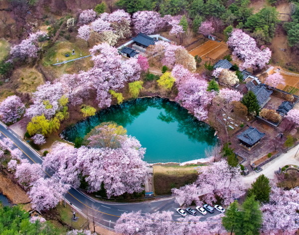 가장 먼저 추천한 곳은 거창읍 장팔리 곰실마을에 위치한 덕천서원이다. 거창군의 오래된 벚꽃명소로 연못을 품은 서원 전체가 벚꽃나무가 둘러싸여 장관을 이루고 있어, 가족들과 함께 간식을 즐기면서 나들이 할 수 있는 장소로 꼽힌다.