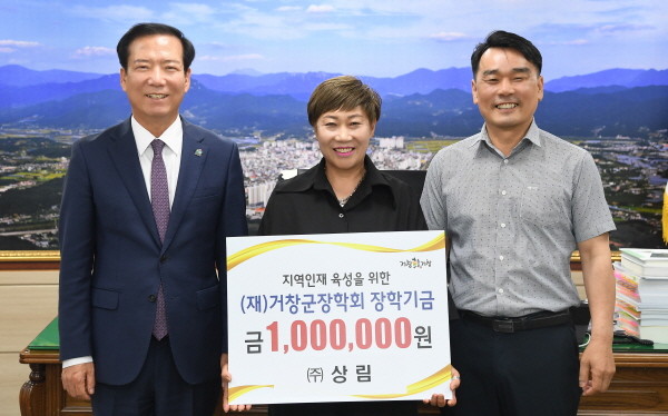 거창읍 대평리에서 전기 내선공사 분야 사업을 하고있는 ㈜상림에서 김재율 대표, 신숙현 이사가 참석해 장학금 100만 원을 기탁 했다.