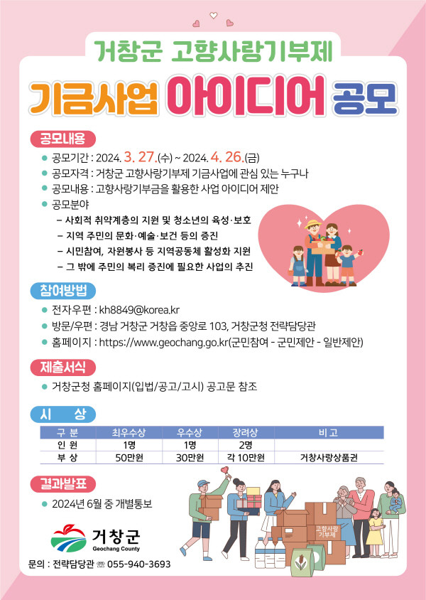 | ▲ 거창군 고향사랑기부제 기급사업 아이디어 공모 포스터(사진=거창군) |