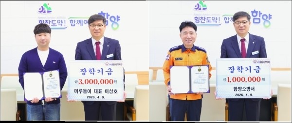 함양소방서는 경상남도 소방본부 주최로 지난 3월 24일부터 26일까지 의령에서 열린 ‘2026년 경상남도 소방기술경연대회’에서 종합 5위를 차지하며 받은 시상금 100만 원을 장학금으로 기탁했다.