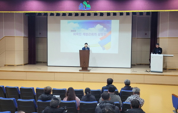 이날 설명회는 고용농가, 결혼이민자 등 80여 명이 참석한 가운데 2024년 외국인 계절근로자 사업추진계획 등 신청방법, 계절근로자의 인권보호, 숙식제공 등 고용주의 필수 준수사항과 근로자 이탈방지 등 주의 사항을 안내했다.