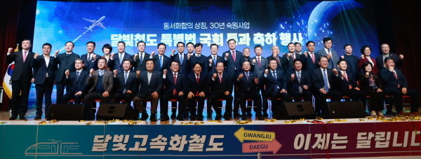 이를 위한 첫걸음으로 7일 오후 광주 김대중컨벤션센터에서 달빛철도가 경유하는 10개 지자체 단체장을 비롯하여 국회의원, 시민 등 1,200여 명이 참석한 가운데 달빛철도 특별법 국회 통과 축하 행사가 열렸다.