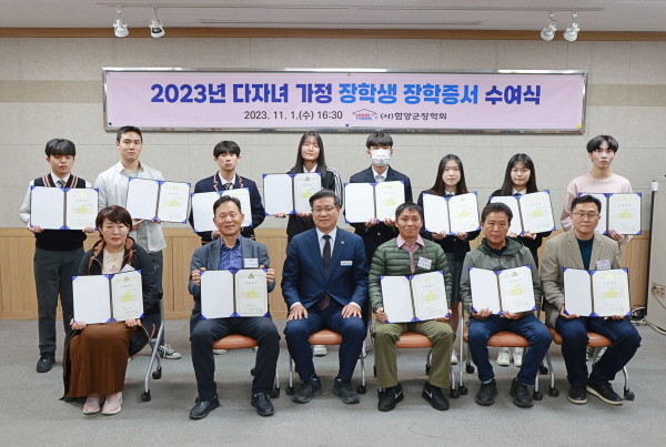 | ▲ 2023년 다자녀 가정 장학생 장학증서 수여식(사진=함양군) |