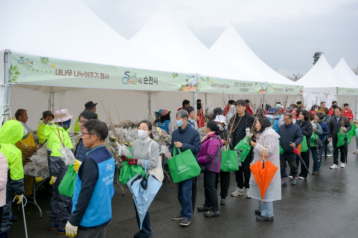 이번 행사는 전라남도, 순천국유림관리소, 순천농협, 순천시산림조합과 협력하여 마련됐으며, 대추·살구·자두·복숭아 등 과실수와 황칠, 서향(천리향), 미니화분 등 총 7종 21,000주의 묘목을 준비해 순천시민 3,000명에게 1인당 7주씩 배부했다.