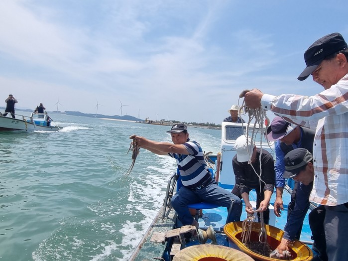 | ▲무안군 낙지 금어기 맞아 어미 낙지 방류/무안군 제공 |