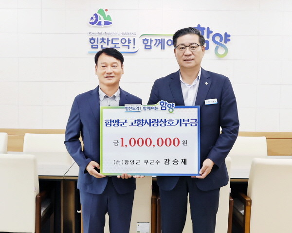 고향사랑기부금을 기탁한 강승제 전 부군수는 진주 출신으로 경남도청 행정과, 인사과, 회계과 등 주요 요직을 거쳐 지난 2021년 7월부터 2022년 8월까지 1년 1개월간 제37대 함양군 부군수를 역임했다.