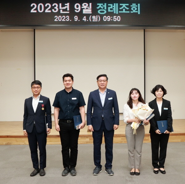 이날 정례조회서 2023년 상반기 정부 모범공무원과 경상남도 자랑스러운 공무원, 그리고 2023년 상반기 함양군 적극행정 우수공무원에 대한 표창을 전달했다.